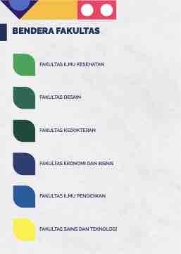 BENDERA FAKULTAS FAKULTAS ILMU KESEHATAN FAKULTAS DESAIN FAKULTAS KEDOKTERAN FAKULTAS EKONOMI DAN BISNIS FAKULTAS ILMU PENDIDIKAN FAKULTAS SAINS DAN TEKNOLOGI